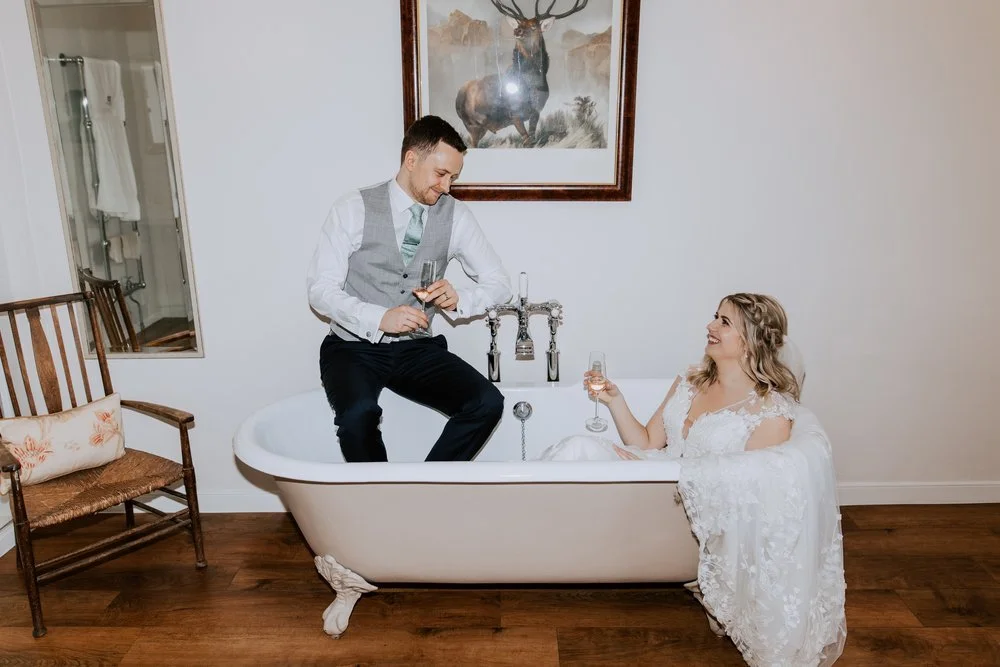 Cheers to the newlyweds in the Sir John Rous luxury bathroom
