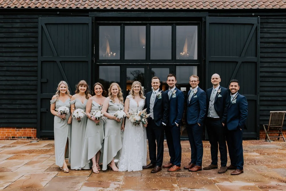Josie and her bridesmaids depart the Hall for their barn wedding