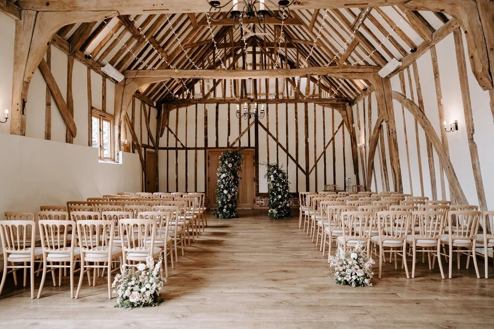 Romantic wedding ceremony set up in the Barn’s Medieval Hall