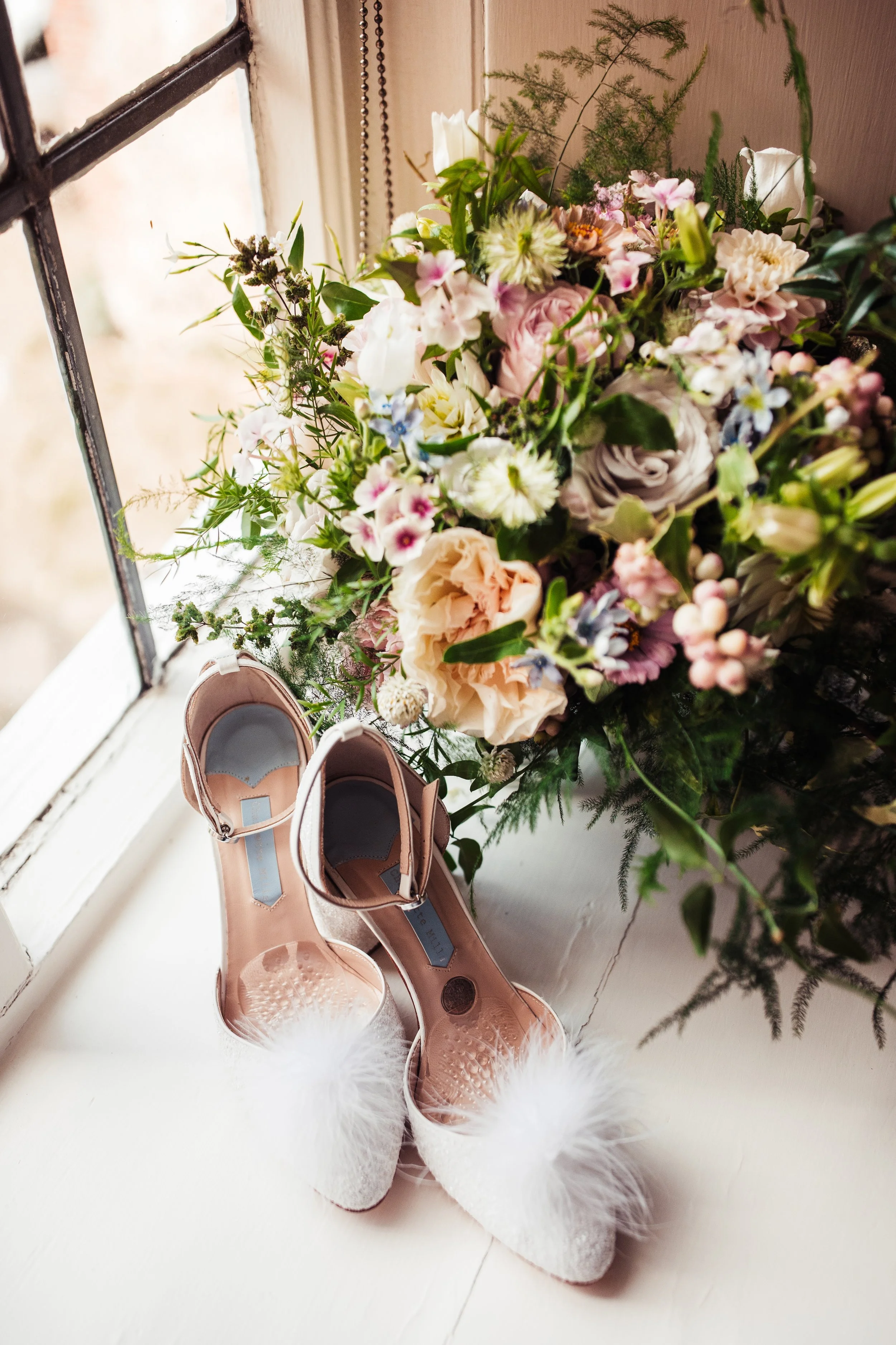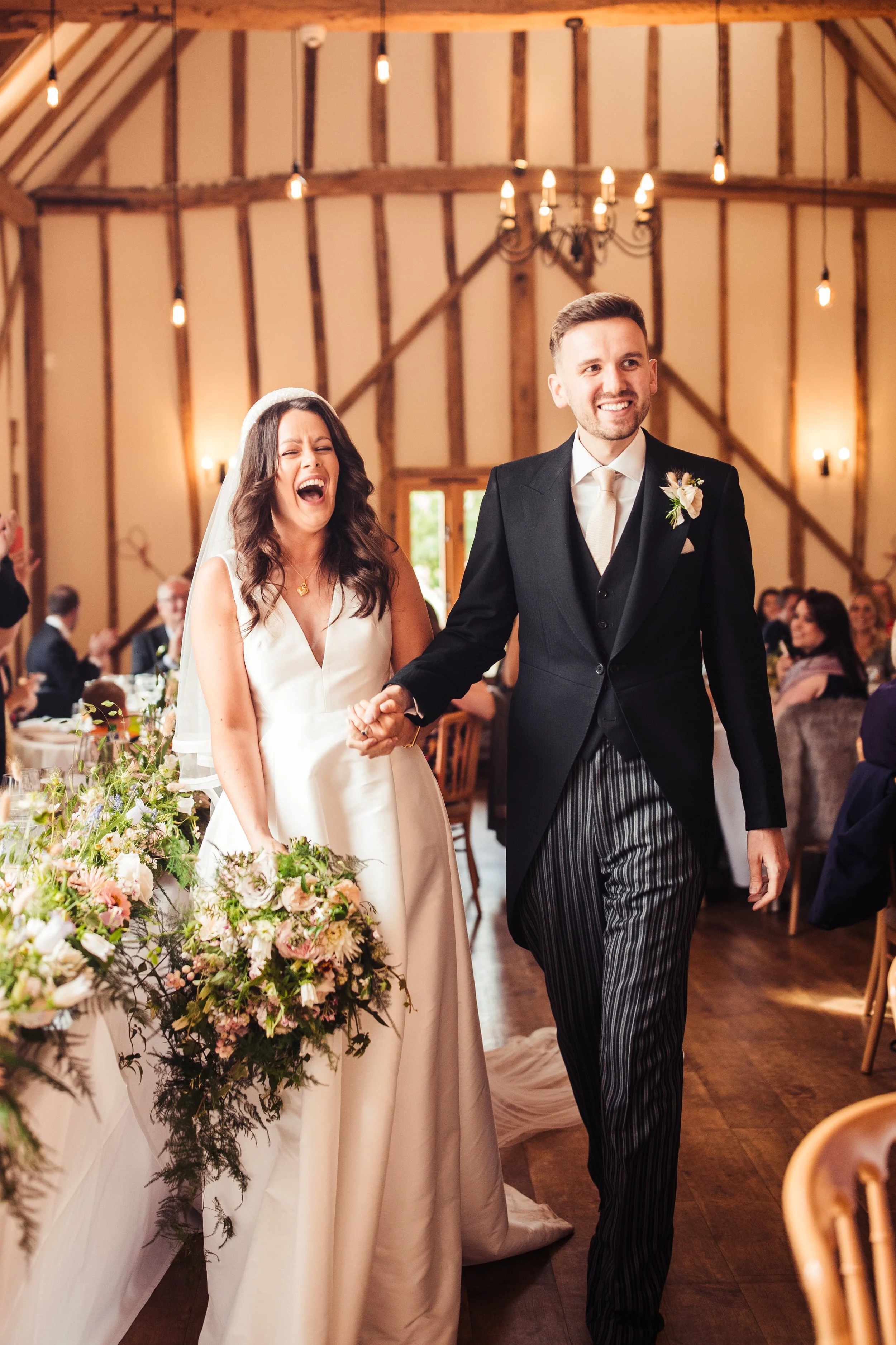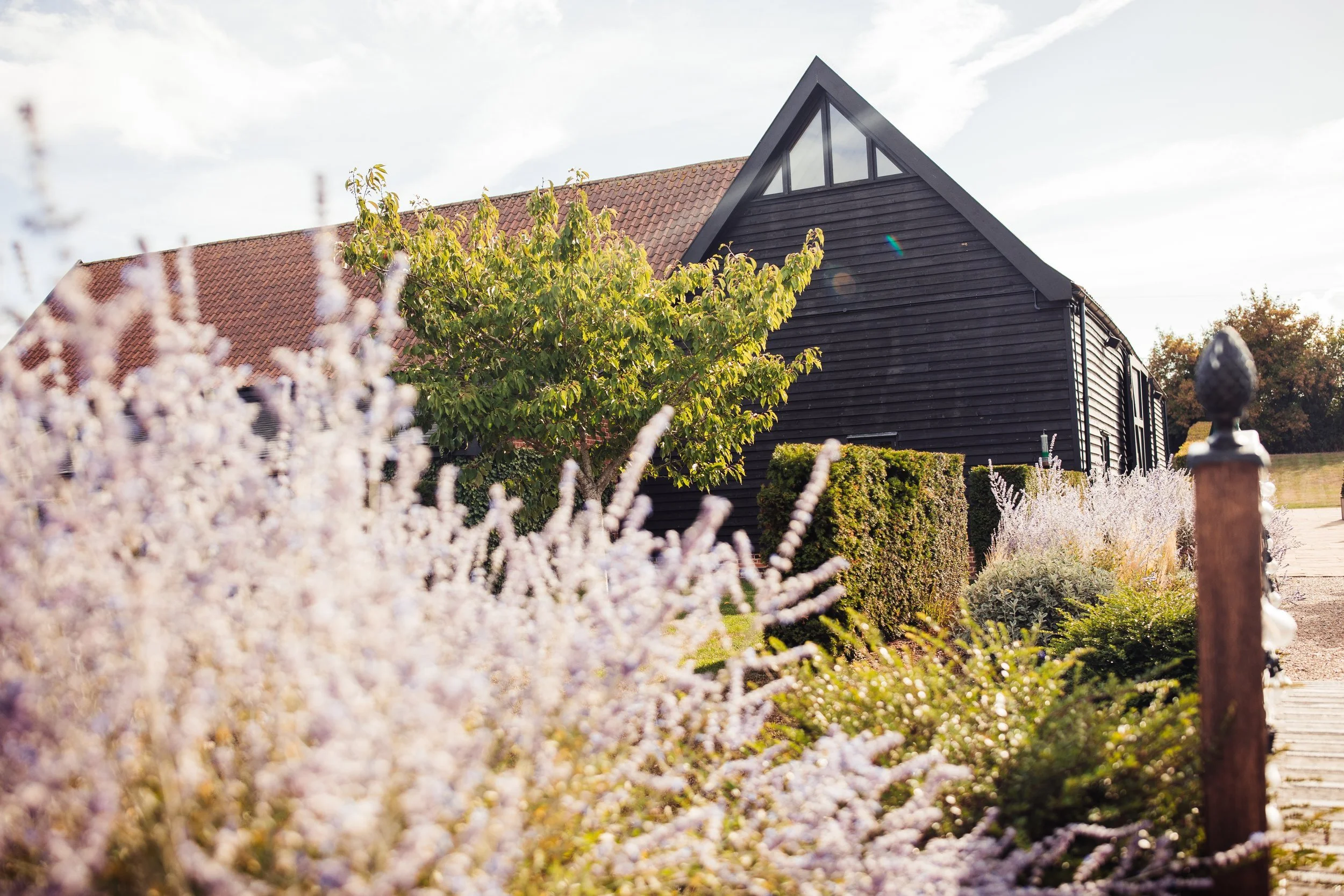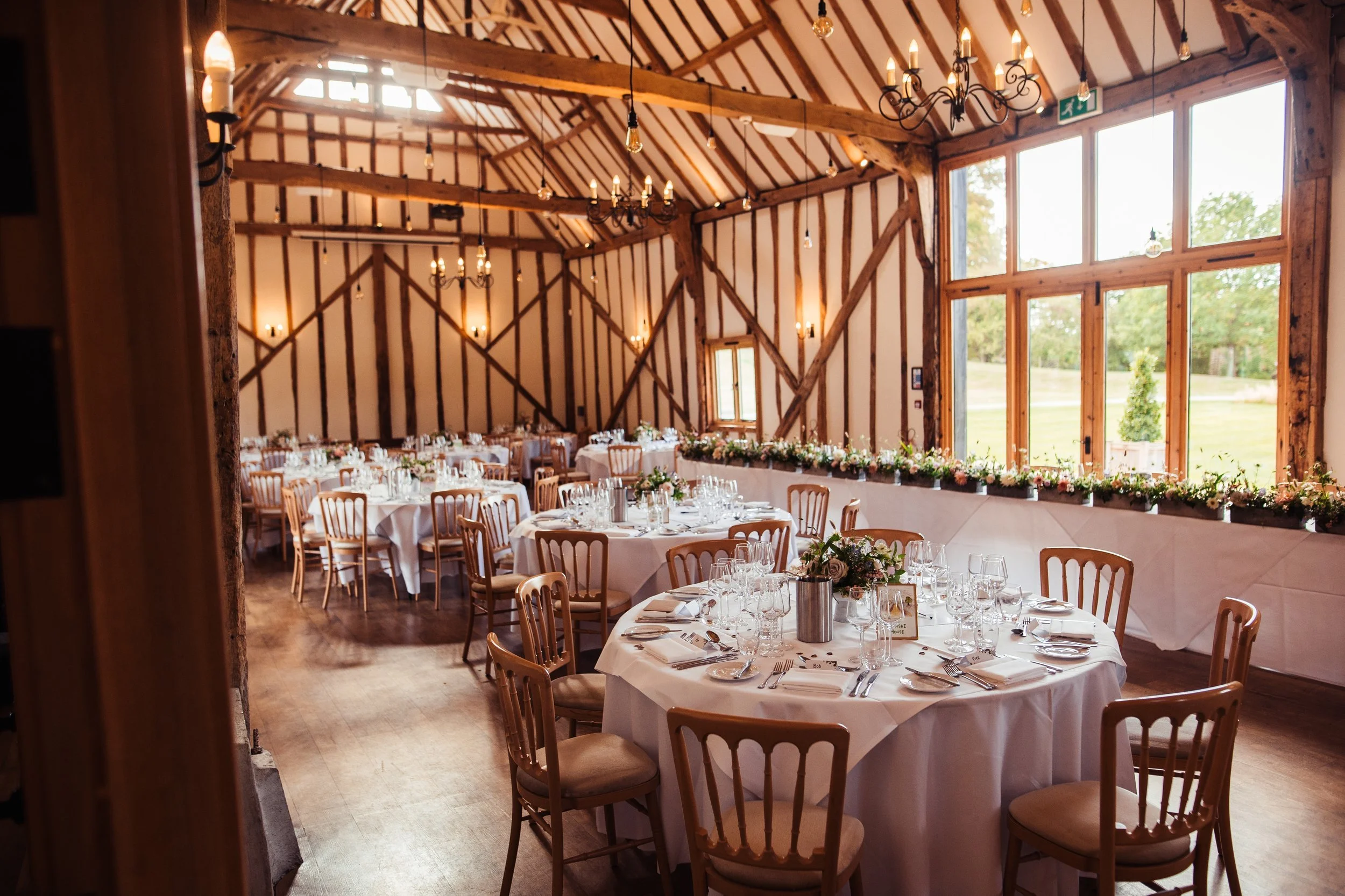 The Bruisyard banqueting hall with beautiful blooms ready for guests to arrive
