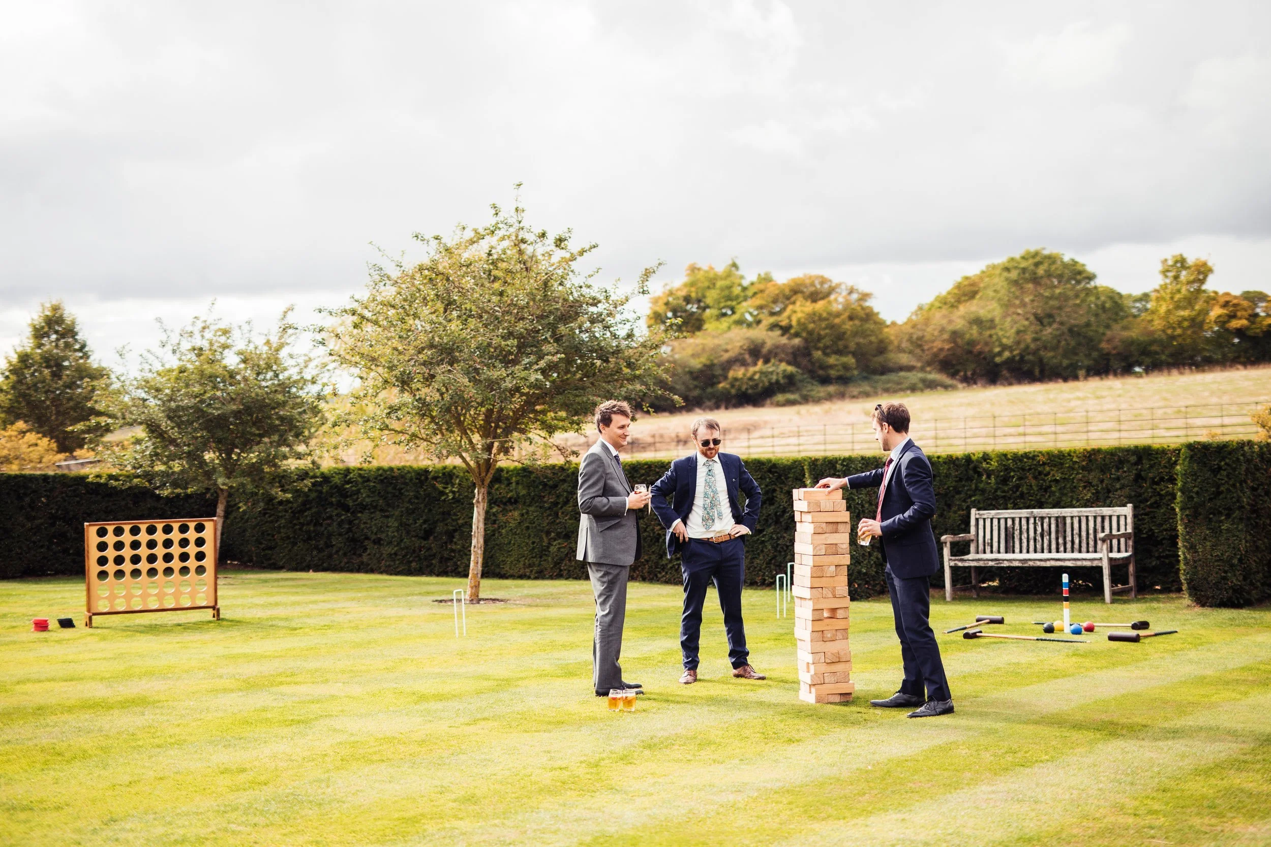 Guests enjoying the Bruisyard garden games during the drinks reception