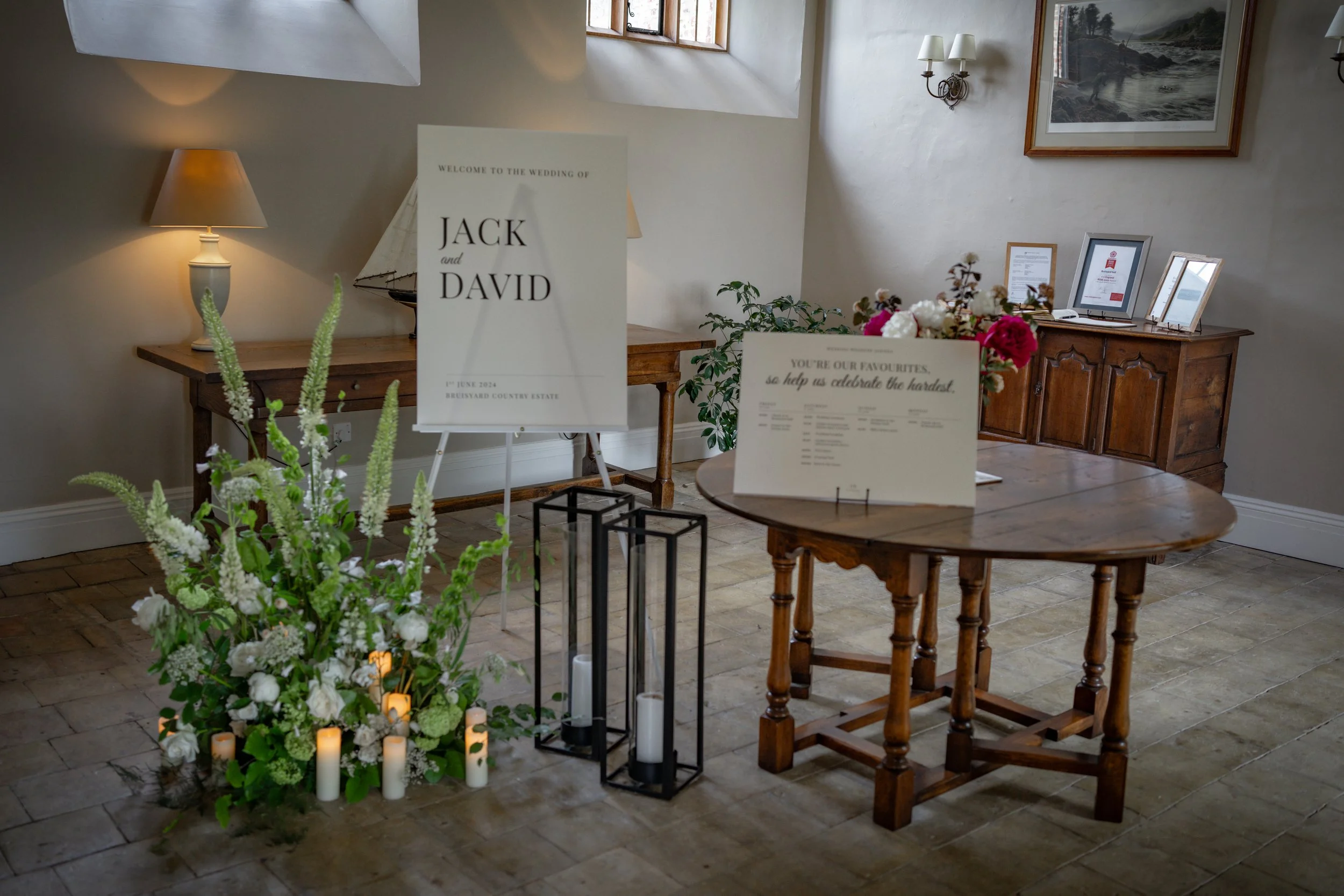 The Banqueting Hall tables styled ready for the wedding breakfast