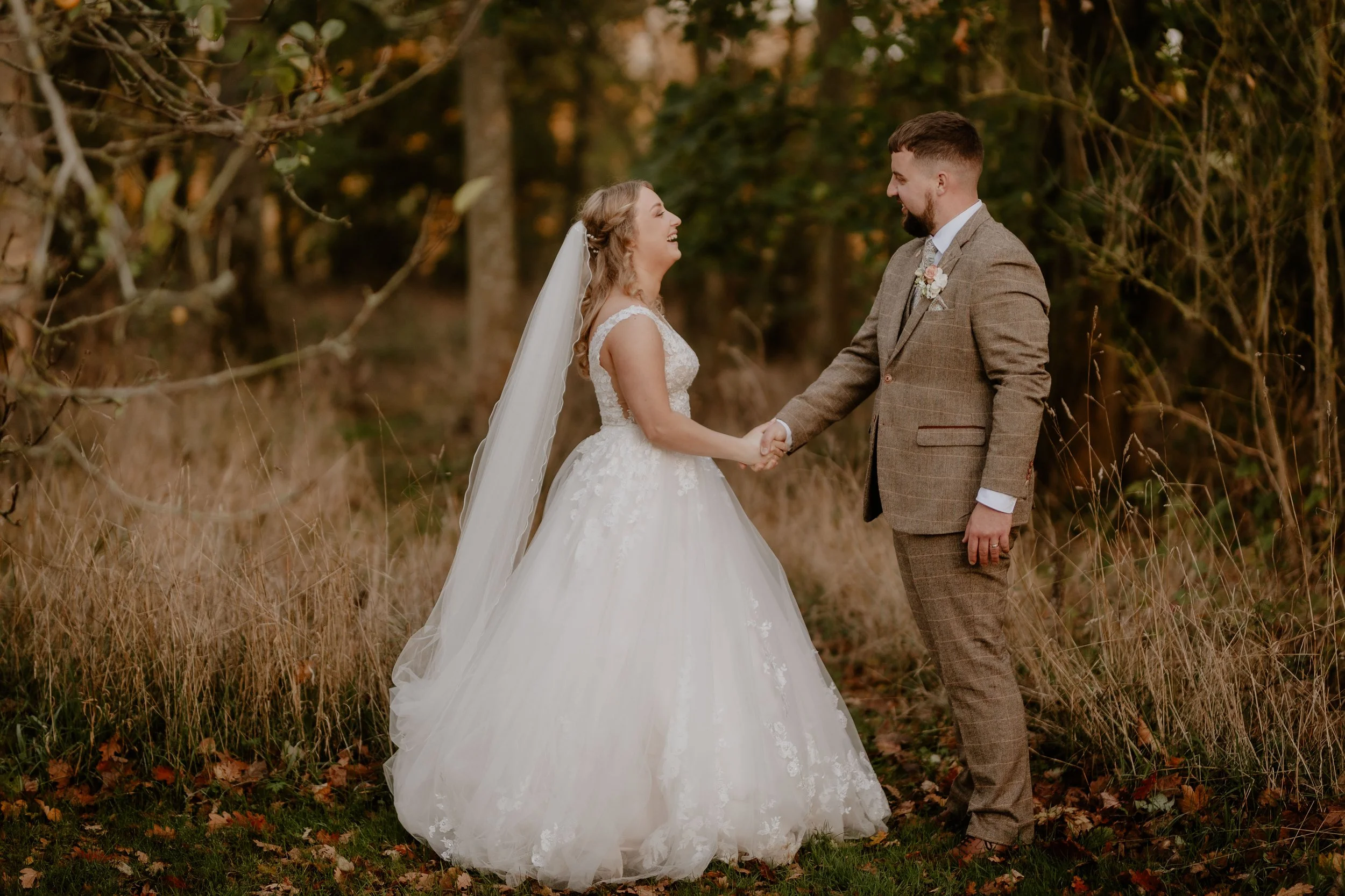 The newlyweds exploring the Autumnal grounds