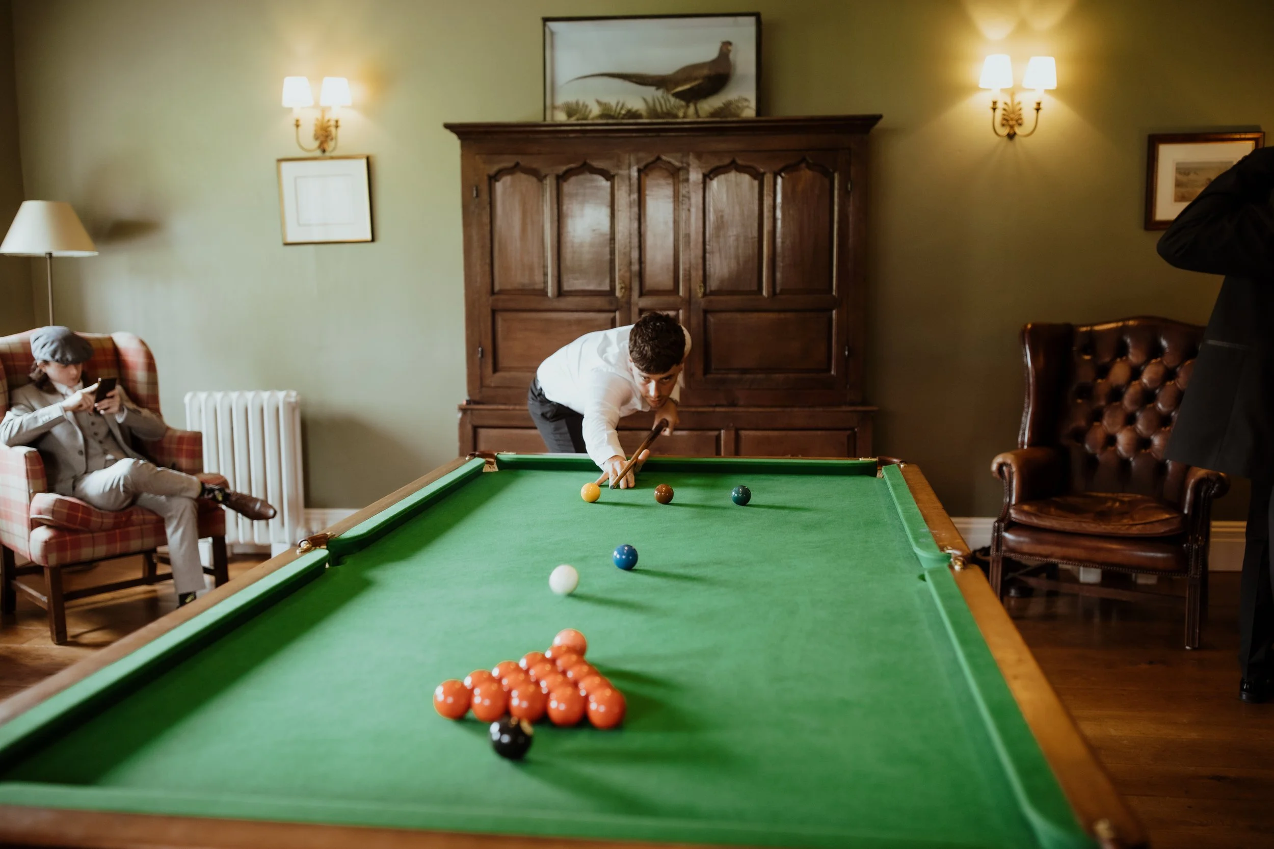 Kyle getting a game of snooker in before the day begins