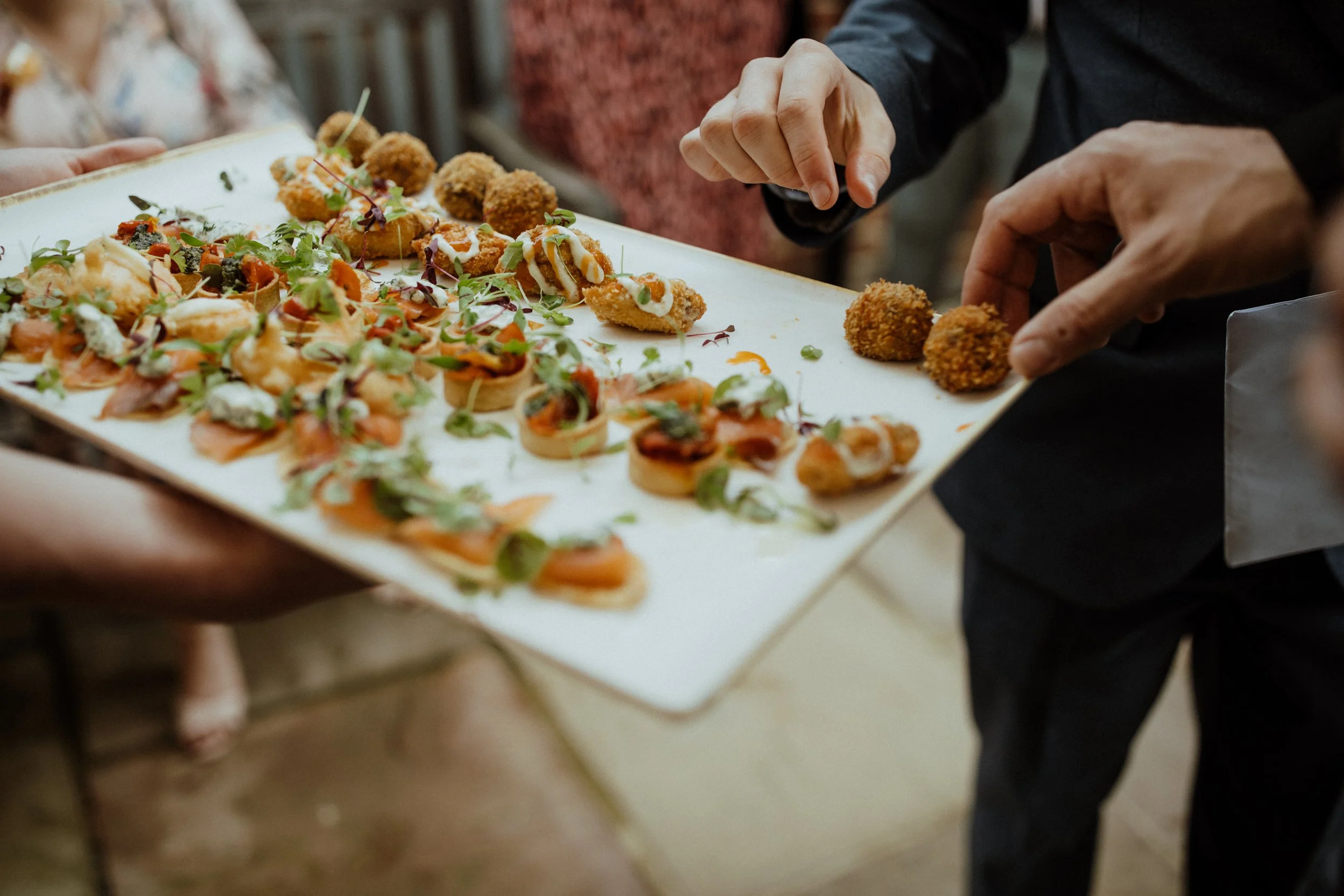 Canapés served in the barn courtyard