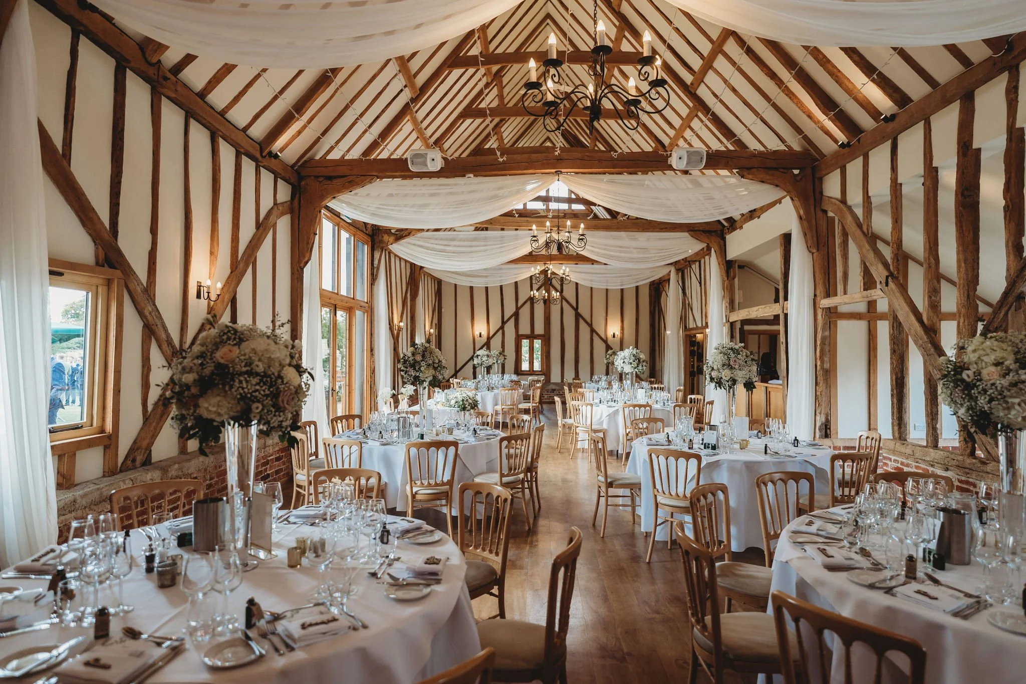 The Banqueting Hall perfectly set up ready for the wedding breakfast