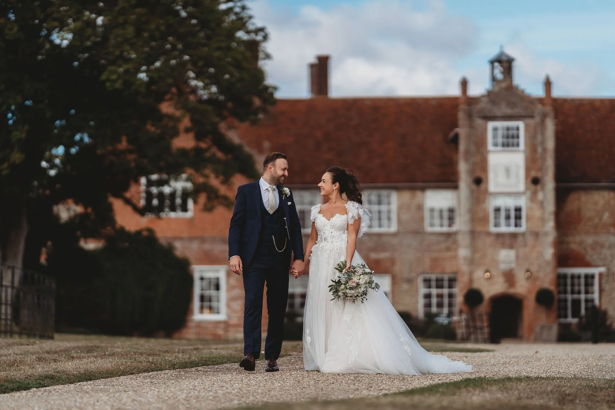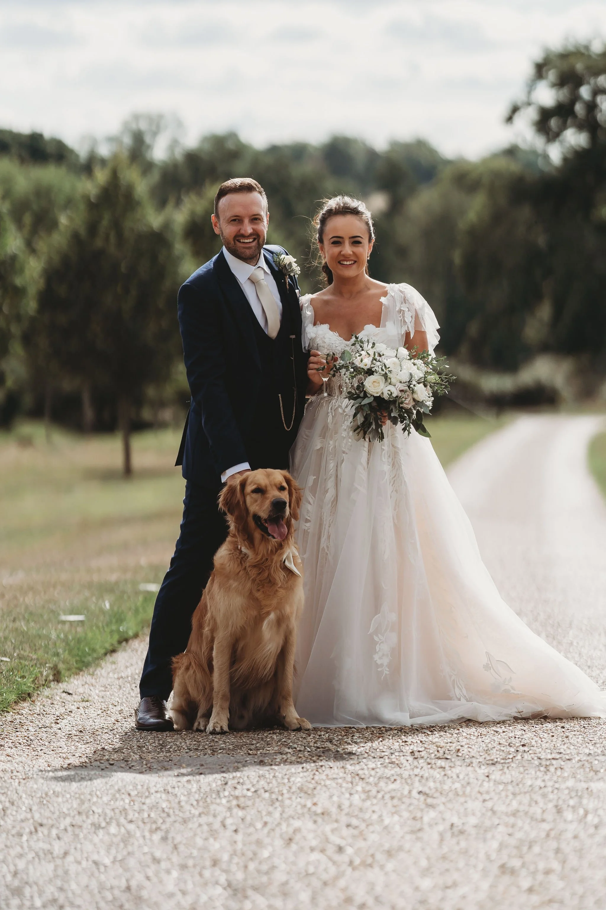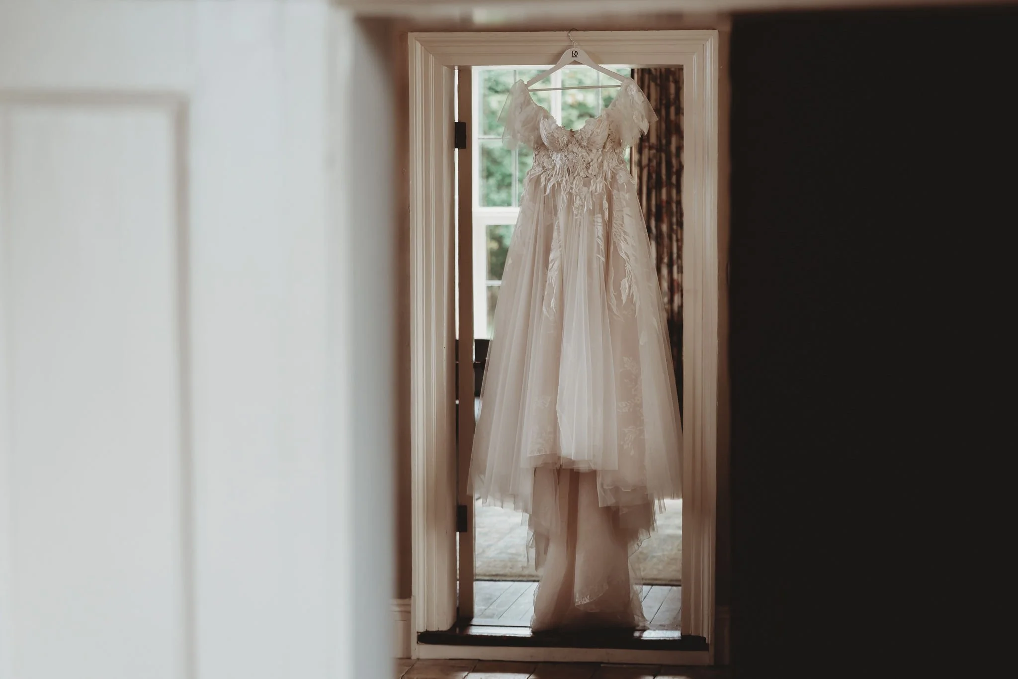 Leanne’s bridal gown hangs in Bruisyard Hall
