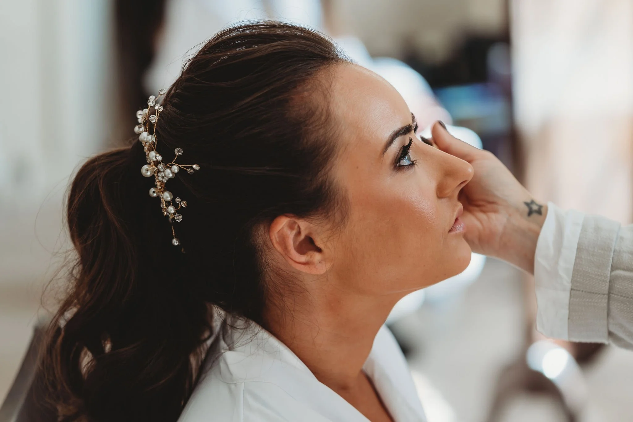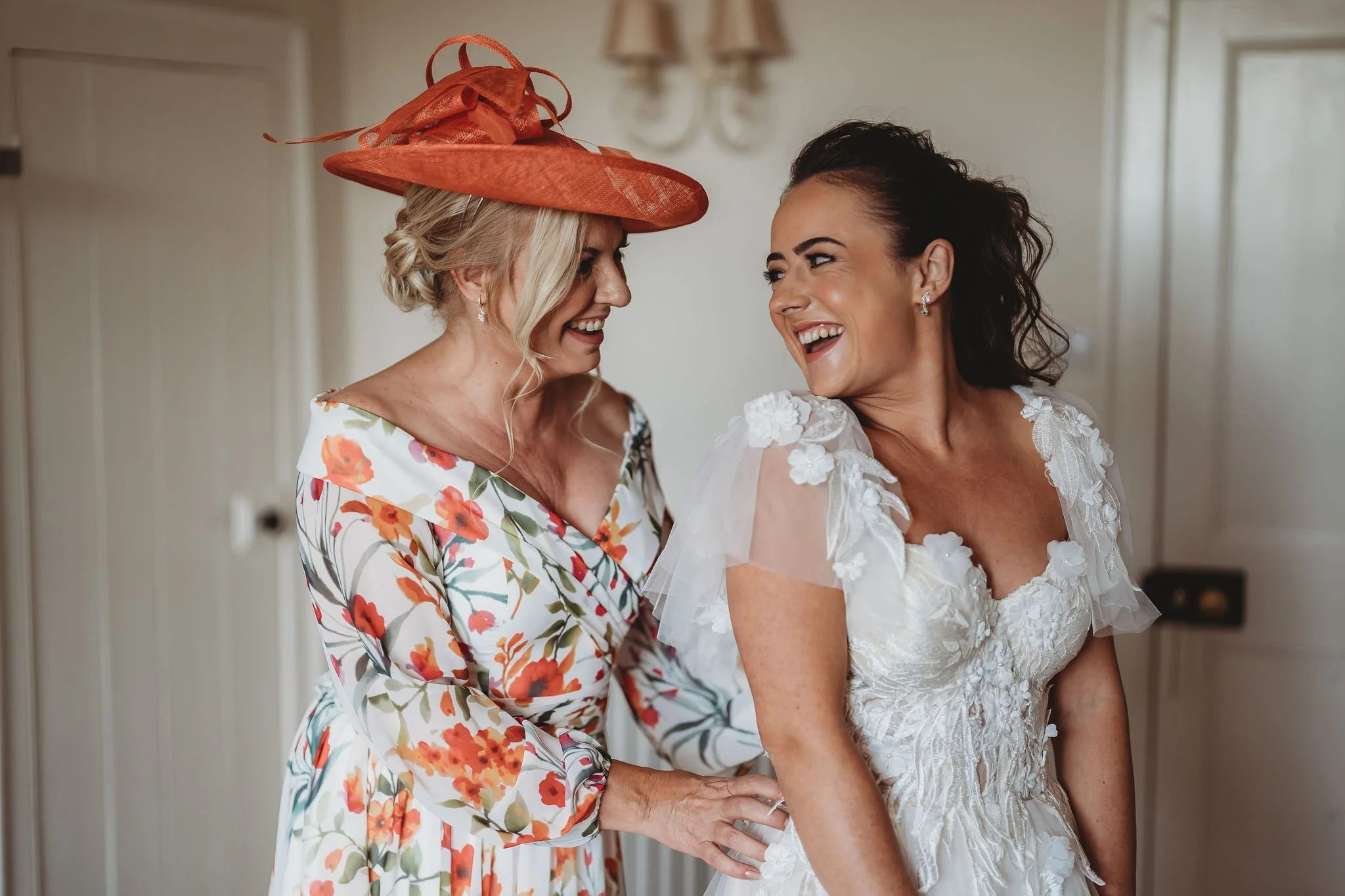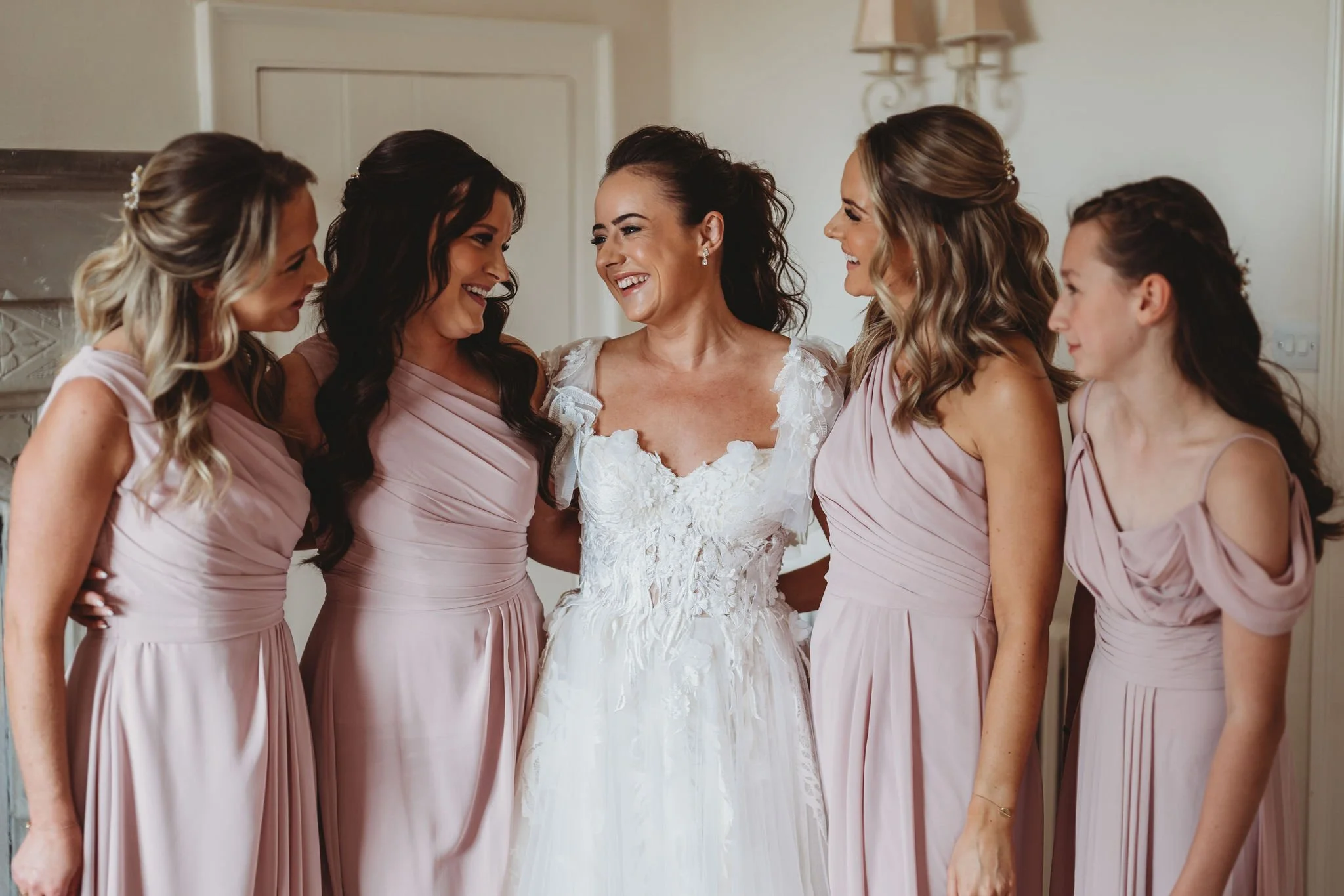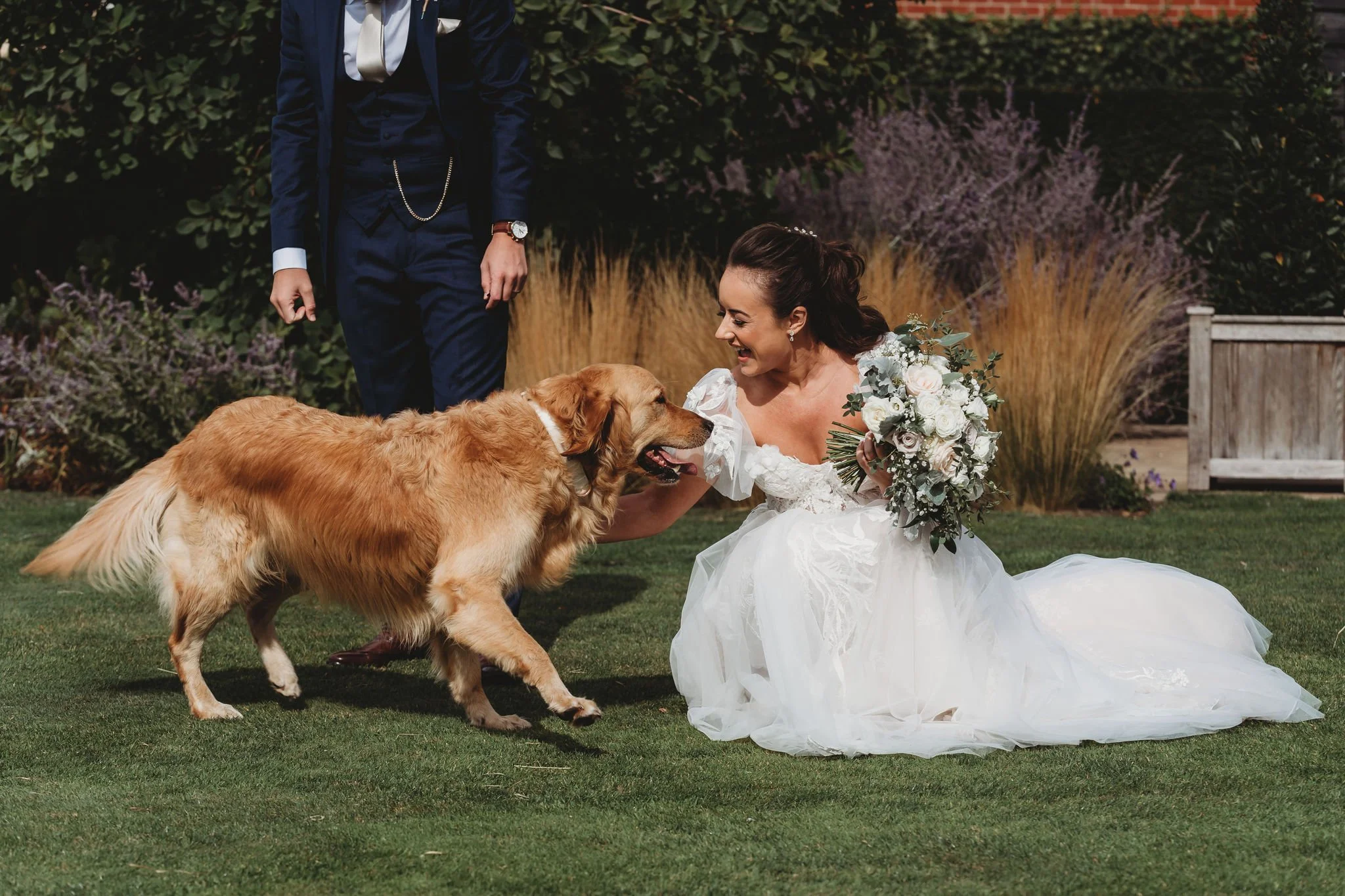 Leanne’s bridal gown hangs in Bruisyard Hall