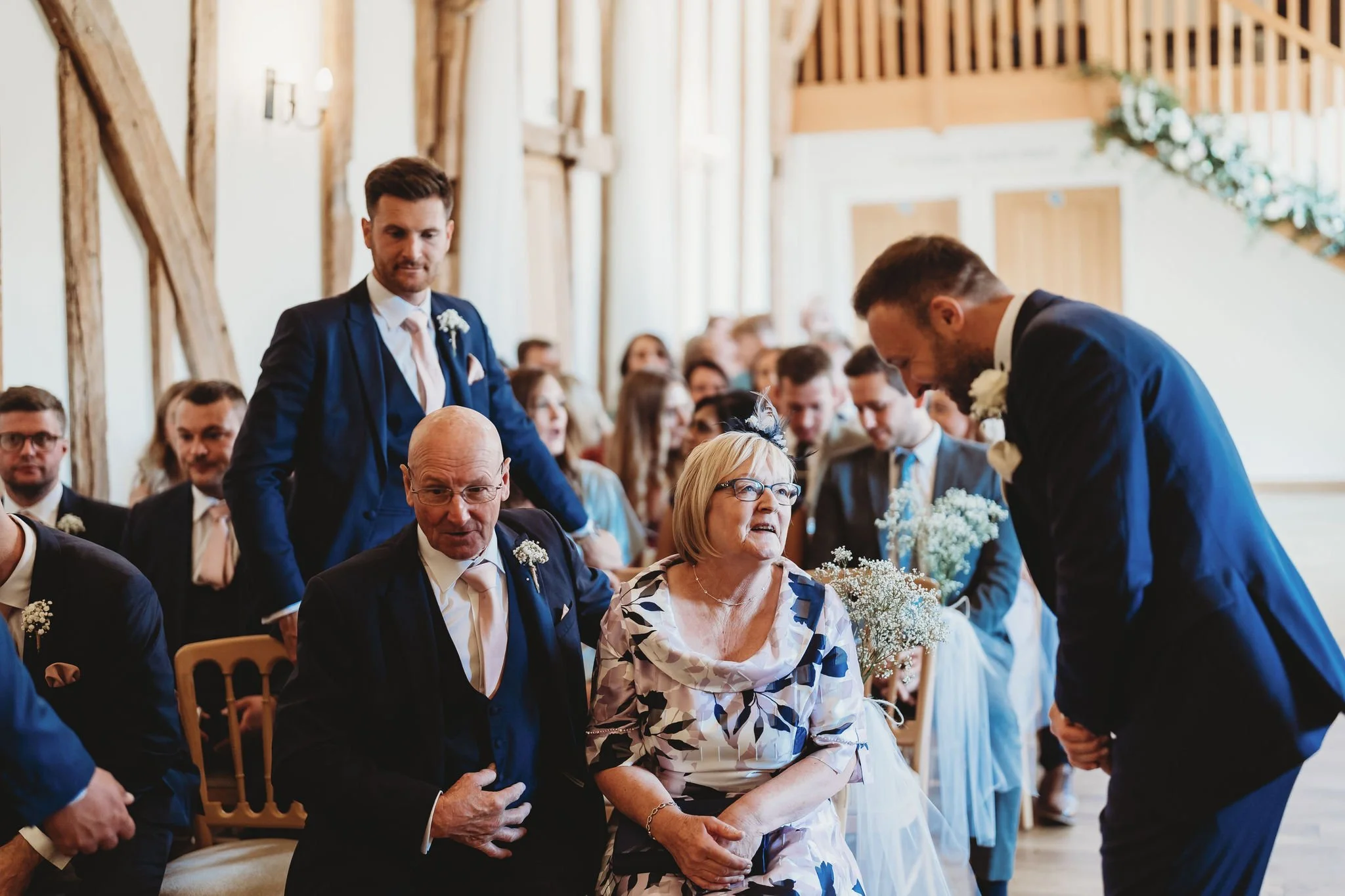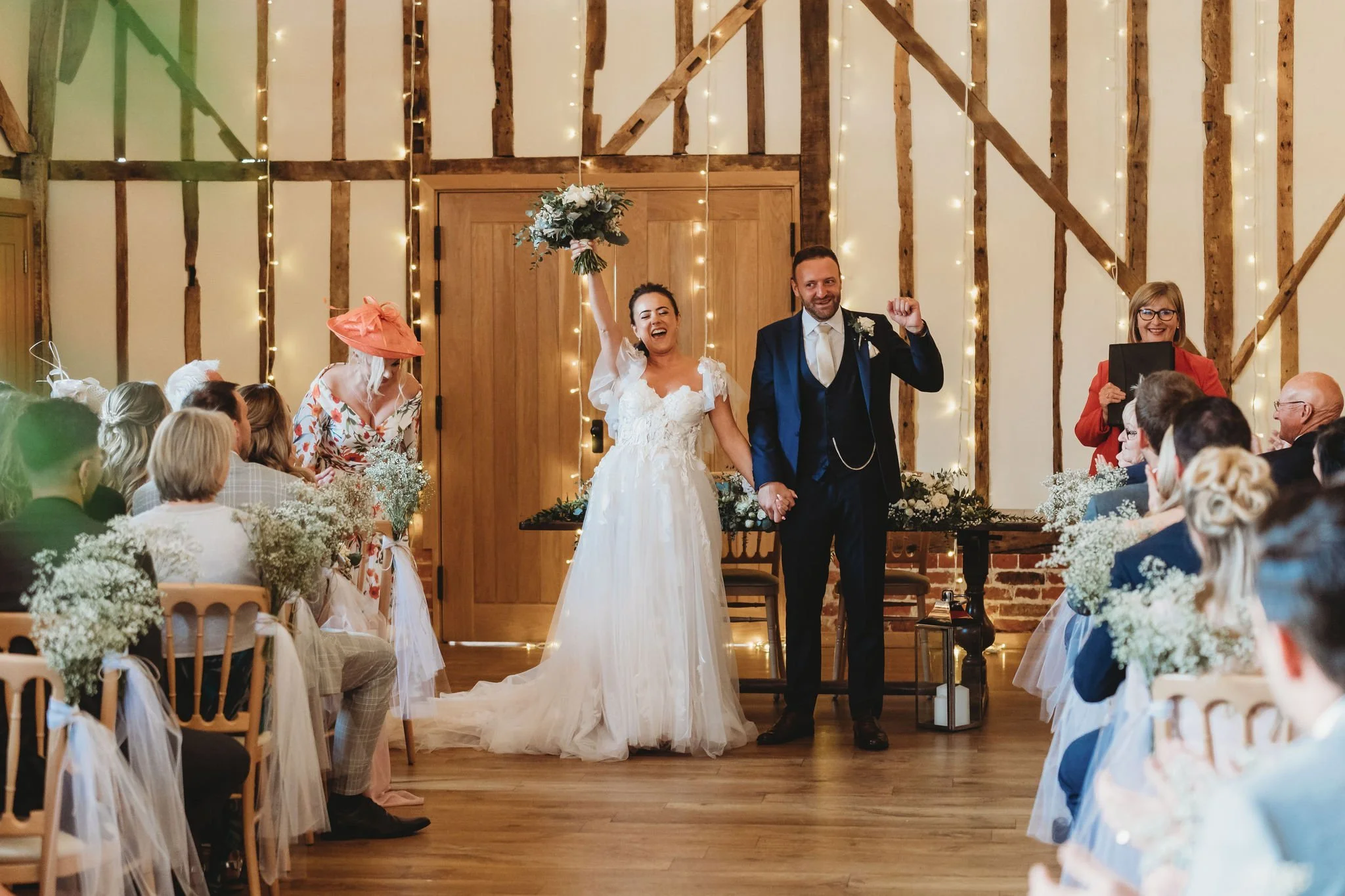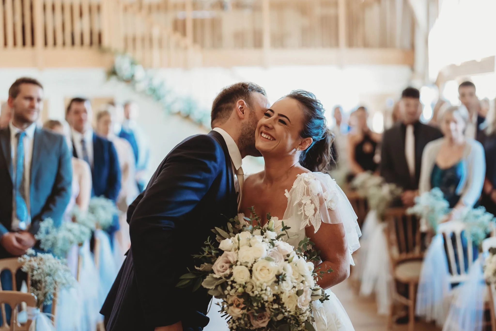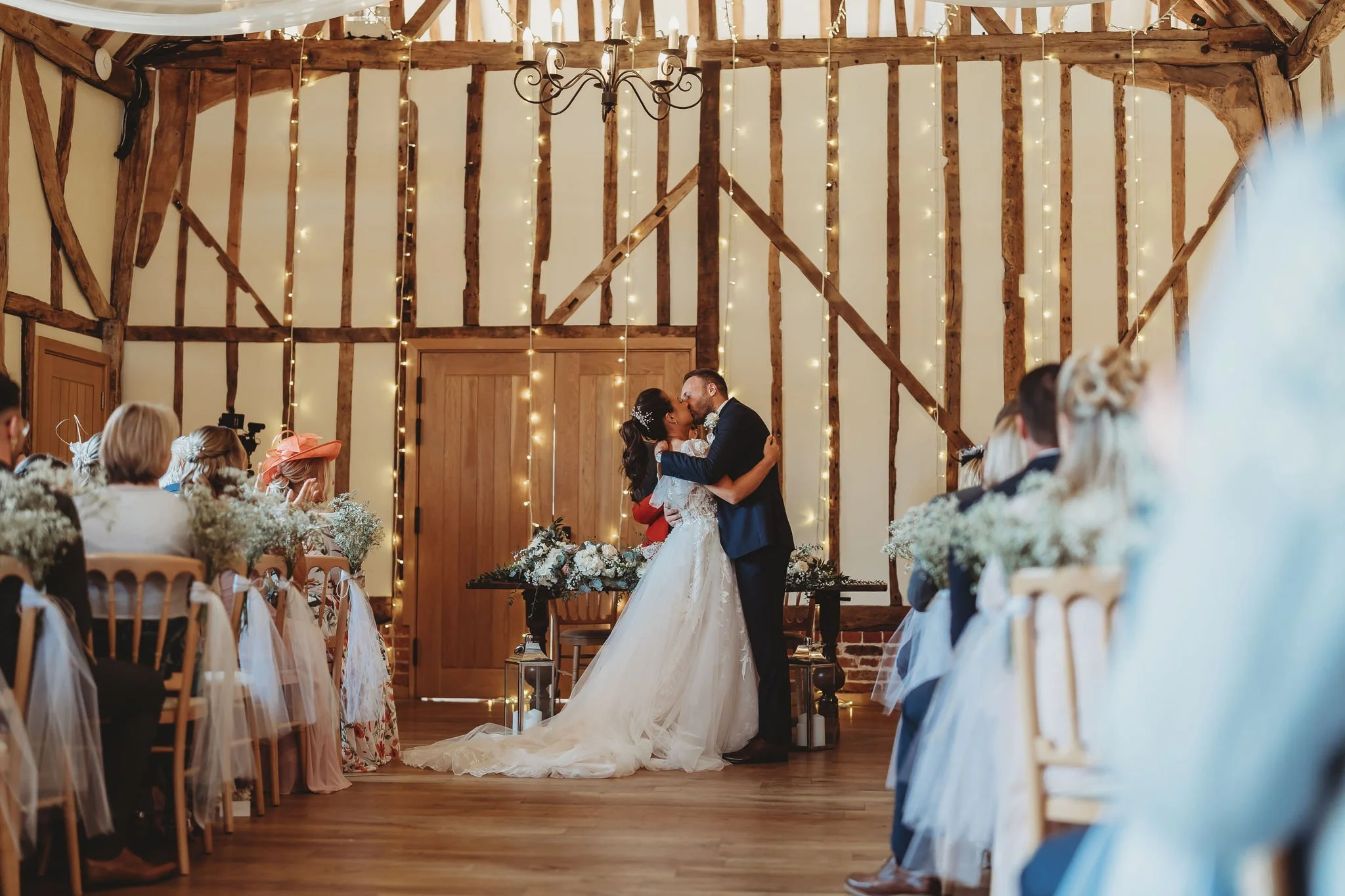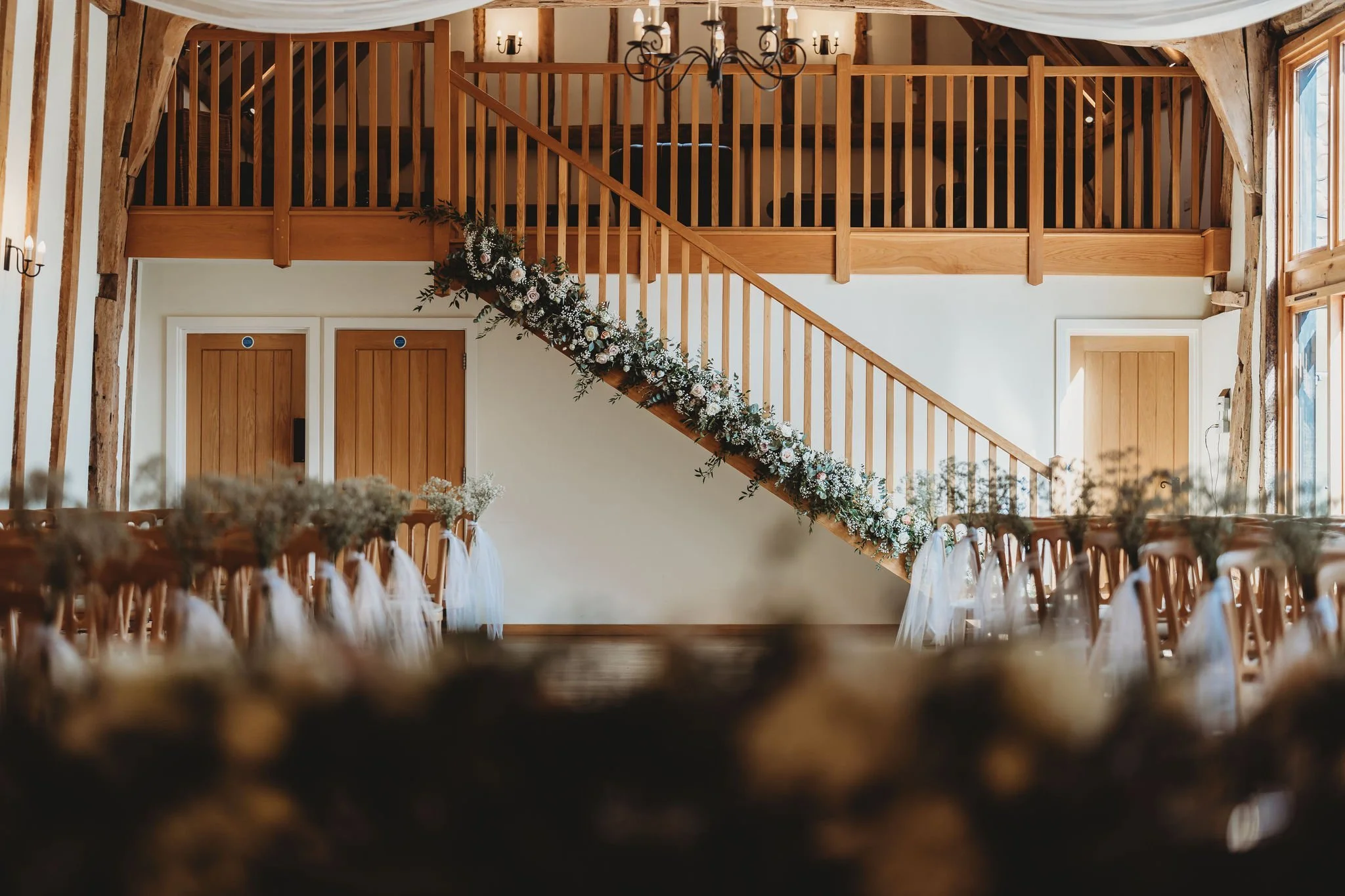 Beautiful ceremony florals in the Barn’s Medieval Hall