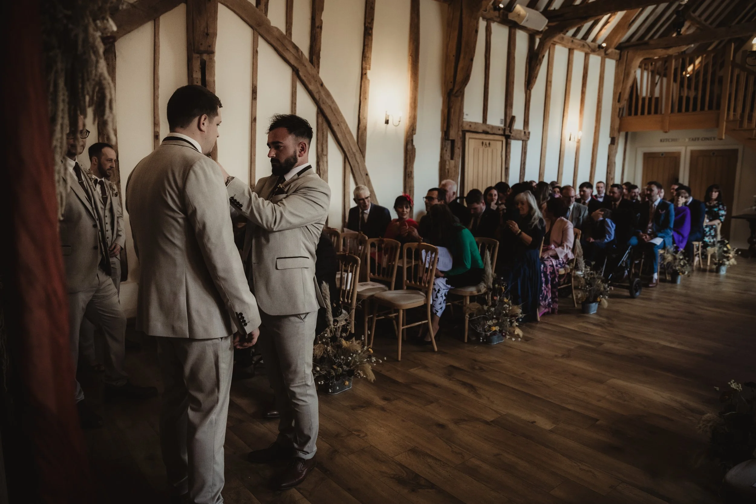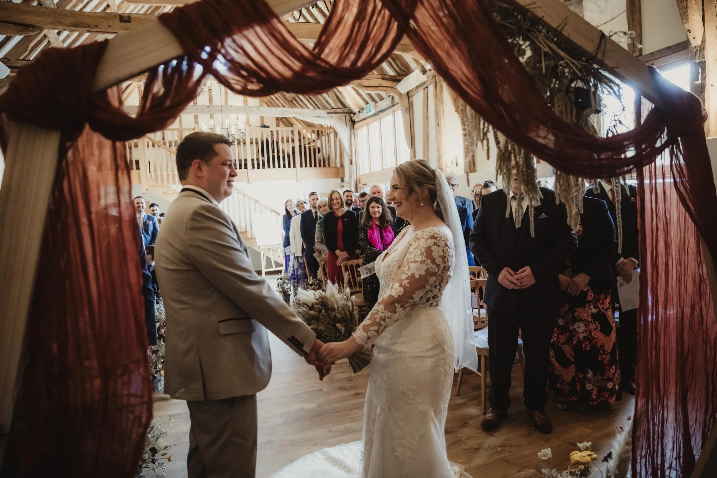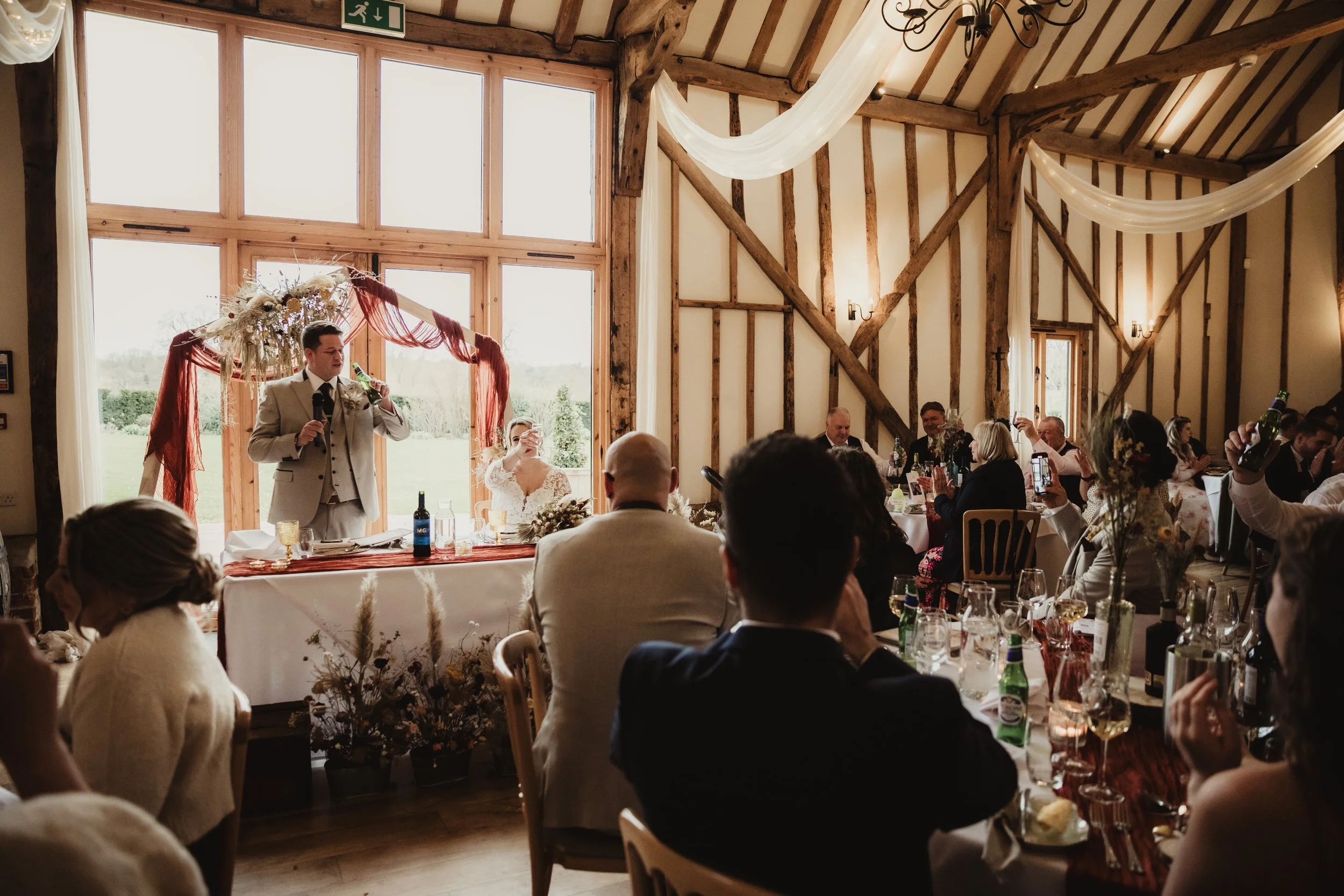 Banqueting Hall at Bruisyard Barn looking wedding ready for L, S & their guests